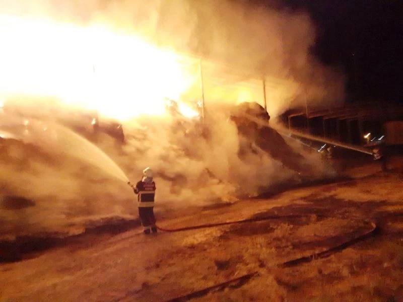 Aydın’ın Germencik ilçesindeki bir hayvan çiftliğinde samanların depolandığı alanda yangın çıktı.