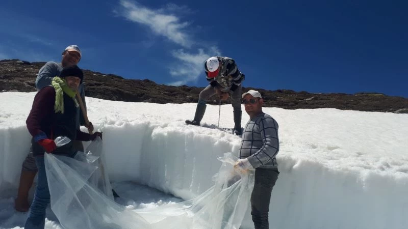 Aydın’da vatandaşların sıcak yaz günlerinde ilk tercihlerinden biri olan kar helvası satışları için geri sayım başladı. Ramazan sonrası havaların ısınması ile satışların başlayacağı varsayılırken, kar helvası işi ile uğraşan Bozdoğanlı karcılar da 1800 metre yükseklikteki Madran Dağı zirvesinde kar mesaisine başladı. Bozdoğan’da yaklaşık 50 ailenin geçim kaynağı olan kar helvası için sabah erken saatlerde başlayan mesaide, kışın toprak altında özel olarak hazırlanan kuyulara basılan karlar, çıkarılarak çuvallara konuldu. Çuvallanan karlar soğuk hava depolarında muhafaza edilerek, sıcak havalarda Aydınlıları ferahlatıyor.