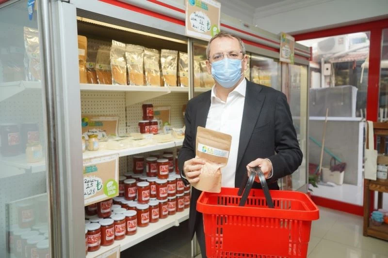 Pandemiden çok önce, Mart 2019 seçimleri öncesi tarım ve tarımda kooperatifleşmeye önem verileceğini, göreve gelir gelmez, yaşama geçirileceğinin sözünü verdiğini hatırlatan Ergin, “Nitekim seçimlerden sonra ilk yaptığımız işlerden biri mahalle evlerini oluşturmak ve Ayvalık Üretim ve Pazarlama Kooperatifini kurmak oldu. Kooperatif demek, dayanışma demektir. Biz bu dayanışmayı halka yayıp öncüsü ve destekçisi olduk. Genel kurulumuzu da tamamladık, yola koyulduk. Satış merkezinin raflarında kardeş kooperatiflerin ürünleri de yer alıyor. Zeytinden zeytinyağına, peynirden, reçele, kuru bakliyattan, erişte ve tarhanaya, sabundan, bitki çaylarına kadar pek çok organik ürünün satışı yapılıyor. Hemşerilerim gönül rahatlığı ile alış veriş yapabilirler” diye konuştu.