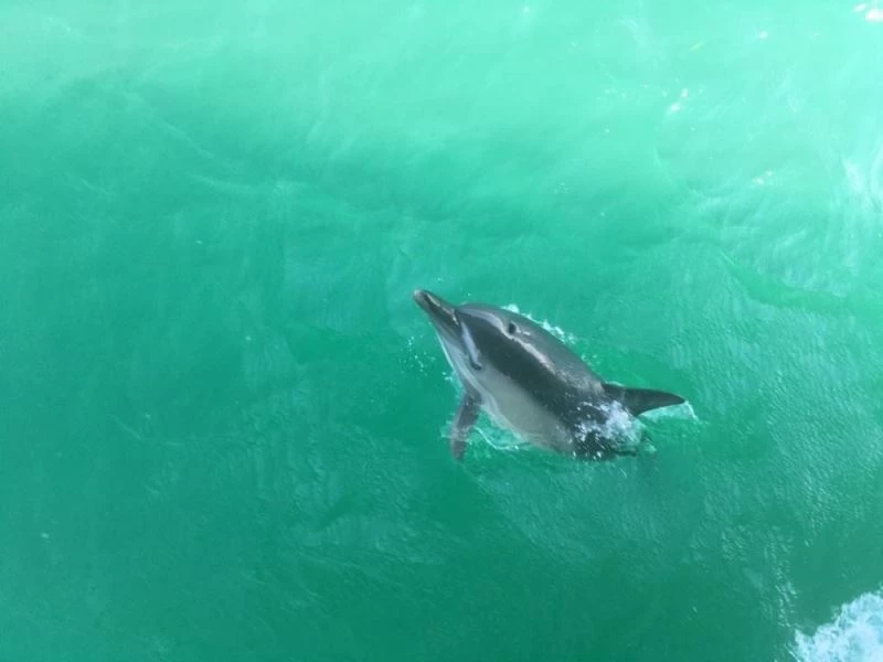 Dalış noktasına kadar tekneleri takip eden yunuslar, bir süre sonra gözden kayboldu.