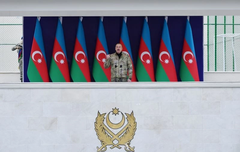 Ermenistan ordusunun neredeyse yok olduğunu belirten Aliyev, “Ermenistan bizim için yeniden tehlike kaynağı olmaya kalkarsa, sonları İkinci Karabağ Savaşı’ndaki gibi olacaktır. Halkımıza, devletimize, toprak bütünlüğümüze yönelik herhangi bir tehdide asla izin veremeyiz. Yurt dışında da olsa bu tehdidi görürsek bizi kimse durduramaz. 44 gün boyunca bizi kaç kere durdurmaya çalıştılar, kaç kere tehdit ettiler, baskı yaptılar. Bizi hiç kimse durduramadı” ifadelerini kullandı.