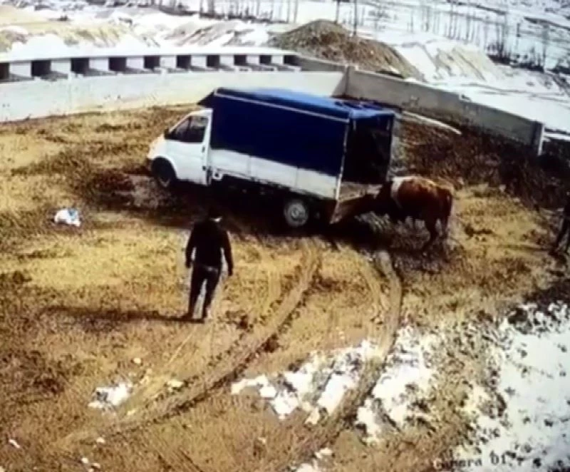 Nevşehir’in merkez ilçeye bağlı Çardak köyünde bir beside bulunan azgın boğa araçtan indirilmesinin ardından önce aracı boynuzları ile itti. Sahiplerinin müdahale etmesine sinirlenen boğa daha sonra ise sahiplerini kovaladı. Boğanın aracı itmesi ve sahiplerini kovalaması ise saniye saniye güvenlik kameralarına yansıdı.