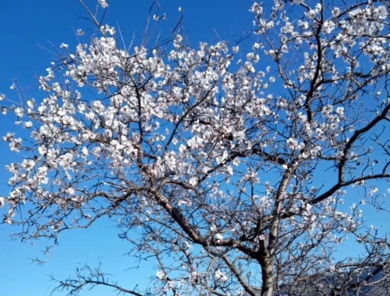 Adıyaman’da hava sıcaklığının normalin üstünde olması nedeniyle bademler çiçek açtı.
