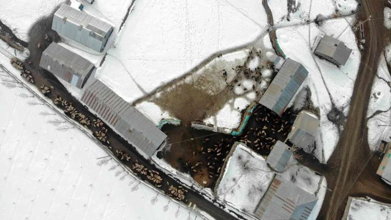 Muş’a 73 kilometre uzaklıktaki Varto ilçesine bağlı Güzelkent köyünde hayvancılık yapan besiciler, çetin kış mevsimine rağmen tek geçim kaynağı olan hayvancılığı sürdürüyor. Günde iki defa hayvanlara kar üzerinde yem veren besiciler, anneleri telef olan kuzuları da biberonla besliyor. Kar üzerinde beslemeleri yapılan koyunların kuzularıyla buluşma anı havadan görüntülendi. Annelerine kavuşarak süt içen kuzular, renkli görüntülere sahne oldu.