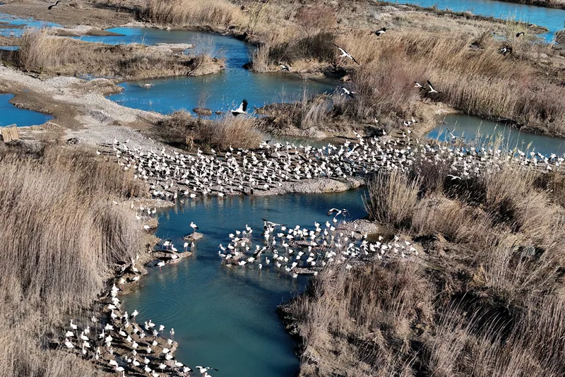 Baharın yüzünü gösterdiği Mersin, leylek ve pelikan sürülerini ağırlıyor