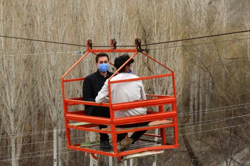 İHA muhabirine konuşan Caner Direk, Van’da daha önce bu şekilde bir sistemin olmadığını belirtti. Teleferik sayesinde rahatlıkla arazilerine gidip geldiklerini ifade eden Direk, “Eskiden evden bahçeye ulaşım 40 dakika sürüyordu. Çünkü arada bir dere ve uçurum var. Ancak şu an teleferikle 40 saniyede geliyoruz. Ailece gittiğimiz Trabzon turunda bu sistemi gördük. Babam da ‘bunu Van’da yapabiliriz’ dedi. Tabi daha önce burada böyle bir sistem yoktu. Asansör işleriyle ilgilenenlere sorduk. Onlarda bizler yatay sistem kuruyoruz, ancak bu dikey diye kuramayacaklarını söyledi. Kuzenimle birlikte Rize’ye gittik ve orada ustayla anlaştık. Tabi ustaların buradaki çalışması bir hafta sürdü. Bir haftada yapılan teleferiği 10 yıldır kullanıyoruz” dedi.