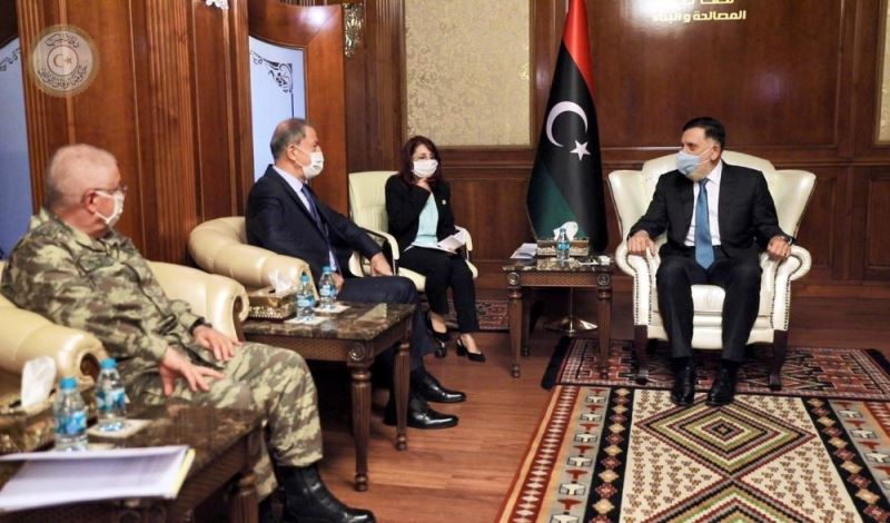 Milli Savunma Bakanı Hulusi Akar, Libya Ulusal Mutabakat Hükümeti Başbakanı Fayiz es-Serrac ile bir araya geldi.