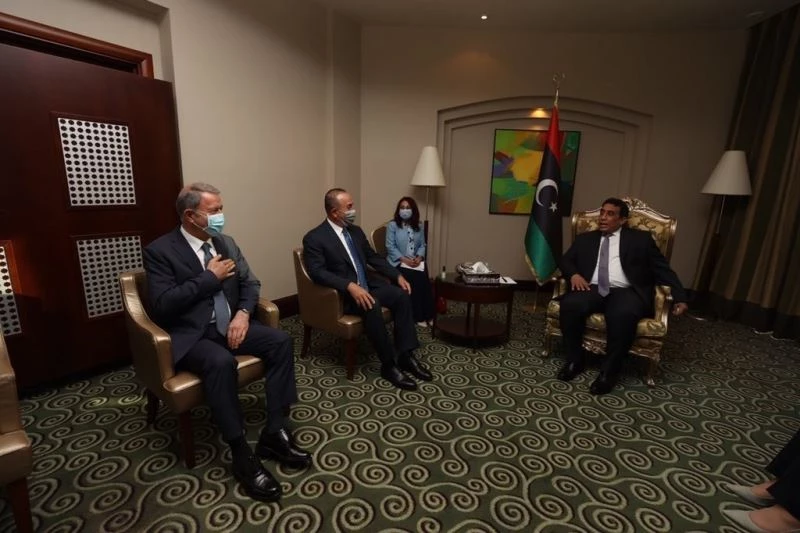 Bakan Çavuşoğlu ve Akar, Libya Başkanlık Konseyi Başkanı el-Menfi ile bir araya geldi