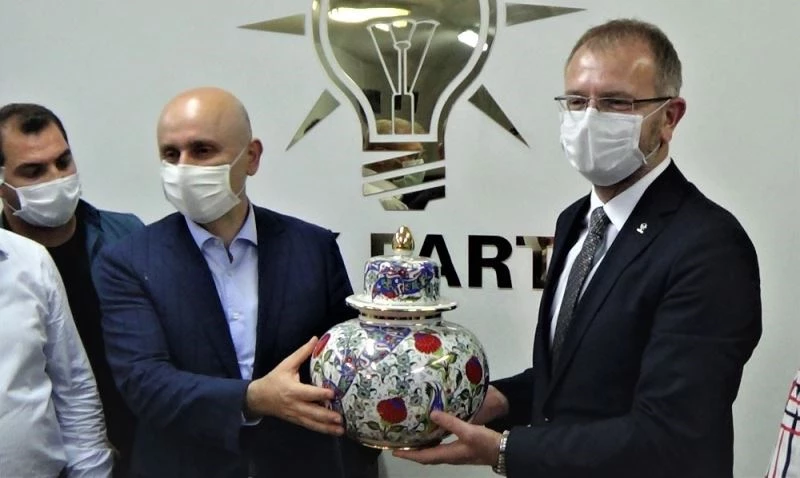 Ziyaret sonrası Bakan Karaismailoğlu’na AK Parti Kütahya İl Başkanı Sebahattin Ceyhun tarafından çini vazo hediye edildi.