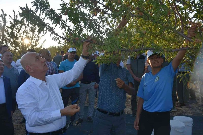 Tarım ve Orman Bakanı Vahit Kirişci, Menemen ilçesindeki meyve bahçesinde dalından badem topladı.