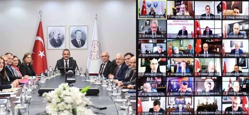 MEB Tevfik İleri Toplantı Salonu’nda gerçekleştirilen ve 81 ilin milli eğitim müdürlerinin de çevrim içi katıldığı toplantıda, okul terki riski taşıyan öğrencilerin tespitine yönelik erken uyarı sistemi ve takip sistemi ile kayıt dışı öğrencilerin eğitim sistemine dahil edilmesiyle ilgili çalışmalar başta olmak üzere eğitim alanında yürütülen diğer güncel konular ele alındı.