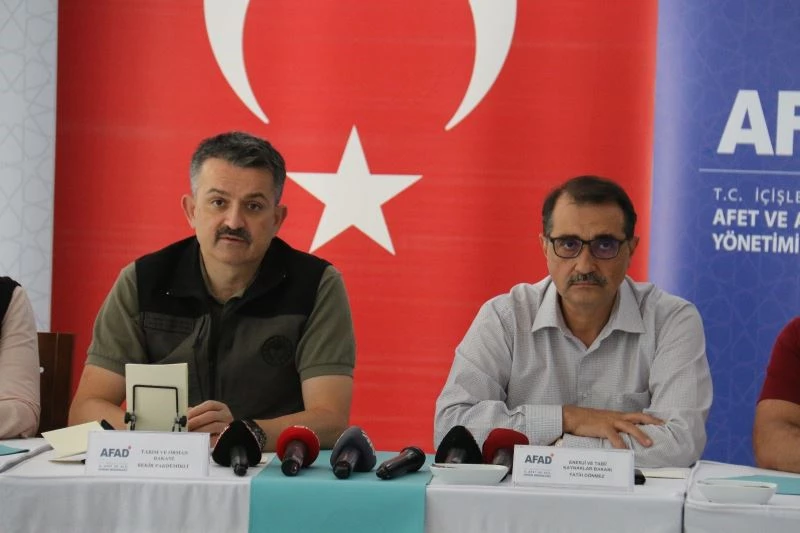 Enerji ve Tabii Kaynaklar Bakanı Fatih Dönmez de, “Nihayet yangınlarımız sona erdi. Bu bölgede kritik tesislerimiz vardı. Kemerköy Santrali’nde ufak çaplı bazı hasarlar da yaşadık. Bakım ve onarımlar hızla tamamlanıyor. Yeniköy Termik Santrali’nde 2. ünite devreye alındı. Kemerköy Santrali’nde de yürütülen çalışmalar sonrası 2. ünite de devreye girecek ve yangın öncesi üretim kapasitesine dönüşecek. Köylere ve mahallelere elektrik verilmeye başlandı. Hiçbir vatandaşımız mağdur bırakılmadı. Dün sabah Batı Karadeniz’de başlayan sel felaketine 3 bakanımız gitti. Afet bölgesinde gerekli çalışmaları yapıyorlar. Doğal afetlerde aşırı yağışlarda elektrik altyapısı maalesef etkileniyor. 4 il, 19 ilçe, 495 köy elektriksiz kaldı. Bir kısmı AFAD ile ortak çalışılan arama kurtarma faaliyetlerinin çalışmalarında tedbir amaçlı kesildi. Diğer bölgeden gelen destek ekipleri selden etkilenenler için ve elektrik kesintilerin bir an önce normale dönmesi için çalışıyor. Bazı yerleşim noktalarına mobil jeneratörler getirildi. Tedbiri elden bırakmadan mücadeleye devam ediyoruz ve 3 bakanımız orada. Ben de buradan ayrılınca ivedilikle bölgeye intikal edeceğim” dedi.