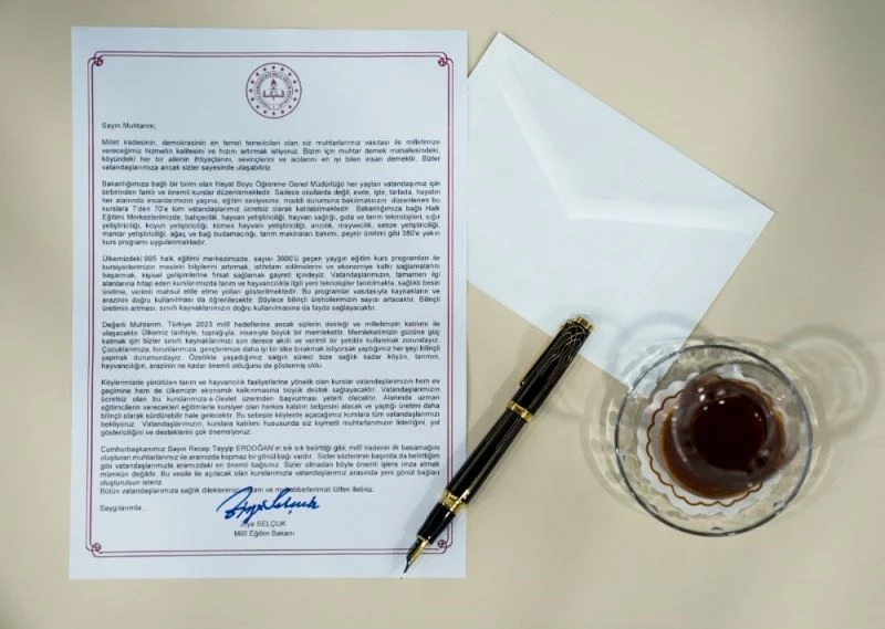 Milli Eğitim Bakanı Ziya Selçuk, Hayat Boyu Öğrenme Genel Müdürlüğü’ne bağlı Halk Eğitim Merkezleri’nin başlatmış olduğu ’Kurslarımızla Köylerdeyiz’ adlı proje kapsamında 25 bin muhtara mektup gönderdi.