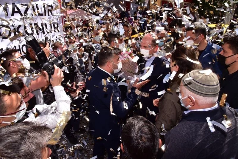 Bakan Soylu’yu Afyonkarahisarlı esnaf havai fişek ve konfeti patlatarak karşıladı