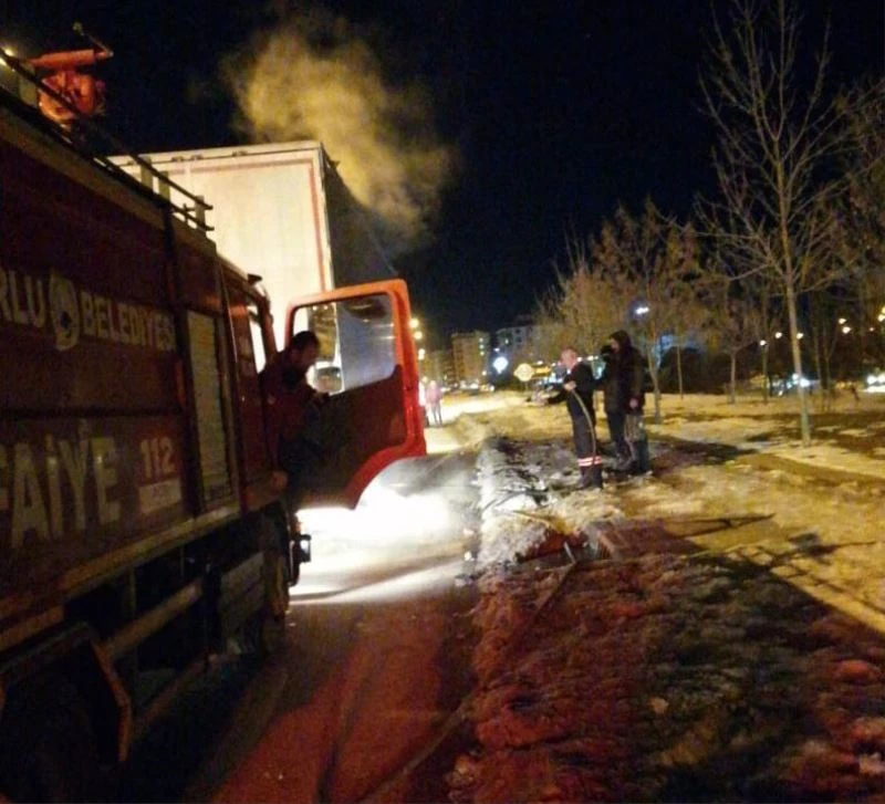 Çorum’un Sungurlu ilçesinde seyir halinde olan tırın balatalarının tutuşması sebebiyle lastiklerinde çıkan yangın, itfaiye ekipleri tarafından söndürüldü.