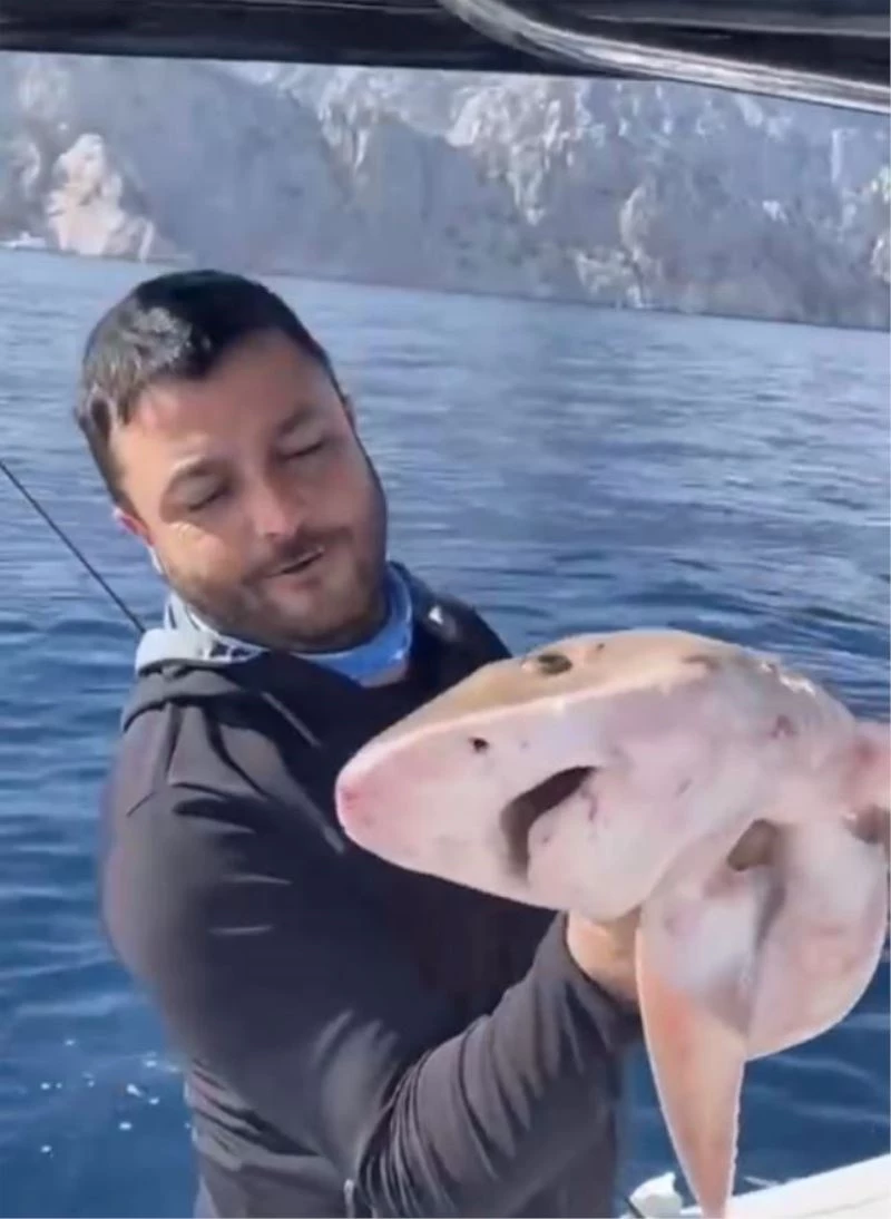 Kemer ilçesi açıklarında denize açılan amatör balıkçıların oltasına köpek balığı takıldı. Oltalarını çeken balıkçılar, misinanın ucunda yaklaşık 1,5 metrelik köpek balığı olduğunu görünce neye uğradığını şaşırdı. Tekneye alınan köpek balığı ölürken, balıkçılar o anları cep telefonuyla kaydetti.