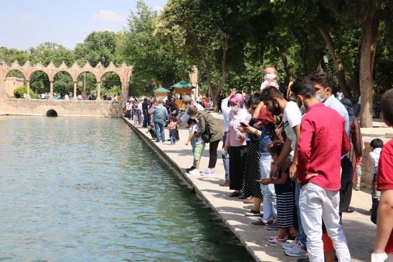 Şanlıurfa’nın en önemli dini, tarihi ve turisttik mekanlarından biri olan Balıklıgöl’de ziyaretçi yoğunluğu yaşanıyor. Pandemi sürecinde evlerinden çıkamayan vatandaşlar, normalleşme süreciyle birlikte aileleriyle hafta sonu Balıklıgöl’e akın etti. Uzun bir aradın sonra Balıklıgöl’ü gezme imkanı bulan vatandaşlar, balıklara yem verdi. Sünnet töreni yapacak olan çocuklar da Balıklıgöl’de gezdi.