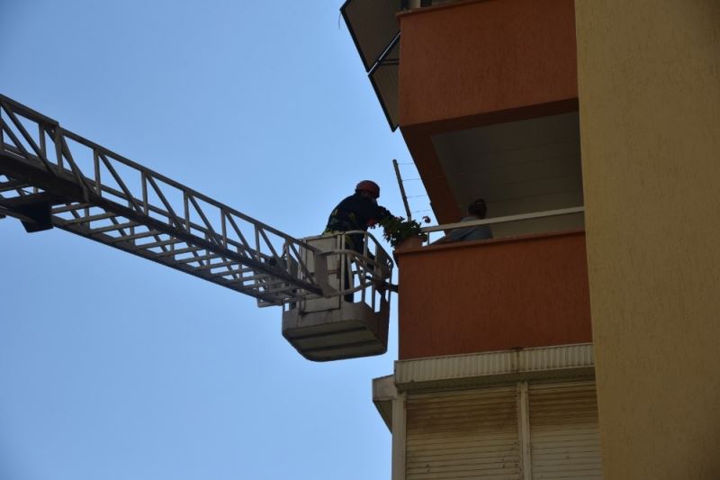 Antalya’da kapı kolunun kırılması sonucu balkonda mahsur kalan yaşlı kadınla kızı, itfaiye tarafından kurtarıldı.