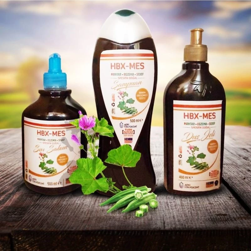 Tabiattaki her bitkiyi özenle incelediklerini ve tabiattaki her şeyin insanoğluna bir yararı olduğunu inandığını elirten HBX AR-GE (BAP) Bilimsel Araştırmalar Projeleri Koordinatörü Hakan Başlık, “Bamya ve ebegümecini uzun süredir inceliyorduk. Bu iki bitki başta olmak üzere çeşitli bitkilerin akışkanları ve bileşenleri ile ürettiğimiz hijyenik sıvı ile şampuan, duş jeli ve sıvı sabun ürettik. Mevcut buluşa Türk Patent Enstitüsü’nden daha önce aldığımı 2020/04013 patent numarasına ek buluş başvurusu yapıp patentini aldık. Hedefimiz egzama, sedef ve mantar hastalığı olanların sıkıntılarını günlük hayatta kullanılabilecek bu ürünlerle gidermek” dedi.