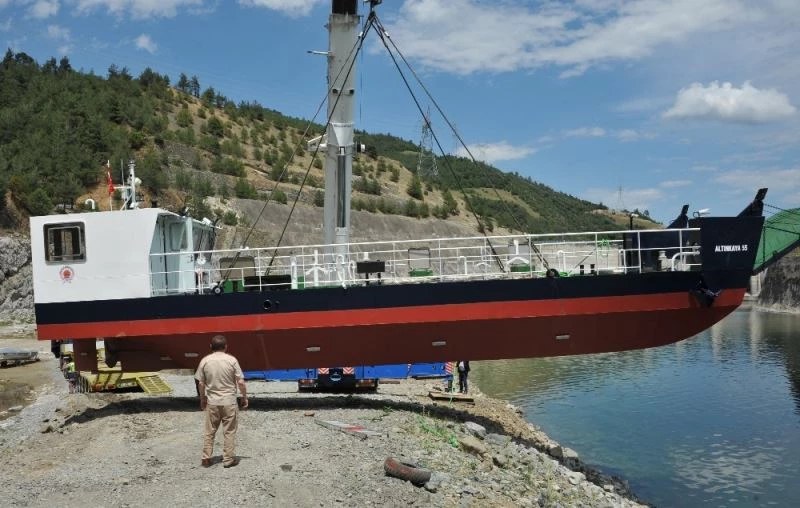 Tuzla’da faaliyet gösteren özel bir firmaya yaptırılan ‘Altınkaya 55’ isimli feribot, Ulaştırma ve Altyapı Bakanlığı tarafından Samsun’un Vezirköprü, Alaçam ve Bafra ilçeleri ile Sinop’un Durağan ilçesinin birbiriyle ulaşımını sağlamak amacıyla Büyükşehir Belediyesi’ne hibe edildi. 2 mürettebat, 12 yolcu, 4 araç kapasiteli, 17 metre uzunluğunda ve 5,60 metre genişliğindeki arabalı feribotun yapımı 6 ay sürdü. İstanbul’dan 20 metre uzunluğundaki TIR ile polis eskortu eşliğinde Samsun’a getirilen feribot, dün de bakanlık ve Büyükşehir Belediyesi’ne bağlı ekiplerin kontrolünde Bafra ilçesinden Altınkaya Barajı’na vinç yardımıyla indirildi.