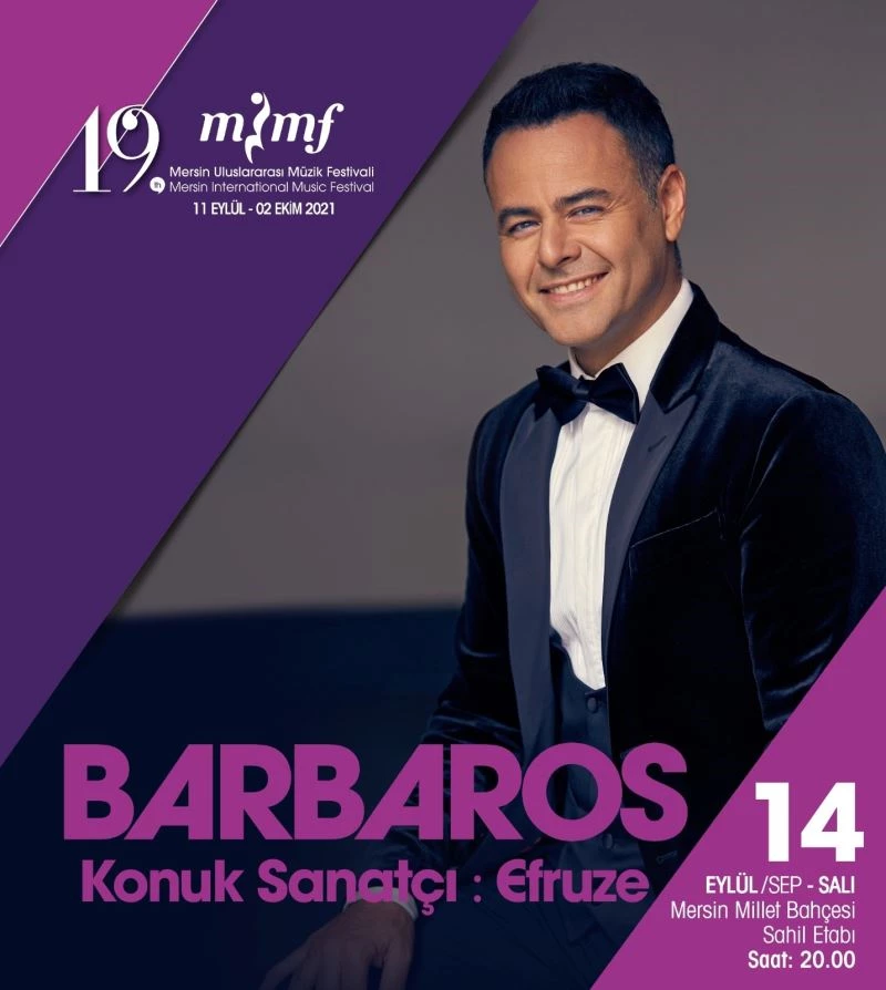 Festival komitesinden yapılan açıklamaya göre, Fransızca, İngilizce, İtalyanca, Yunanca, Portekizce, Arapça ve Rusça seslendirdiği şarkılarıyla dinleyicilerinin gönlüne taht kuran ünlü şarkıcı Barbaros, Mersinli müzikseverlerle buluşacak. Efruze’nin konuk sanatçı olarak yer alacağı konser, 14 Eylül Salı günü saat 20.00’de Mersin Millet Bahçesi Sahil Etabında ücretsiz olarak yer alacak. Konserde, dünya müzikallerinden caz standartlarına, napolitenlerden Fransız chansonlarına ve klasikleşmiş Türkçe şarkılara uzanan geniş bir repertuar seslendirilecek.