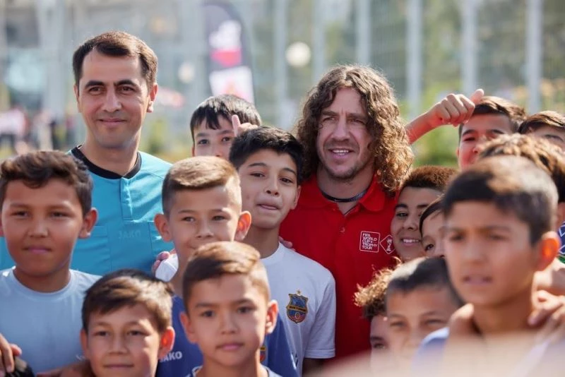 "Dünya Kupası Turu" organizasyonunda Taşkent’e getirilen kupa dolayısıyla, İspanya ile dünya şampiyonluğunu yaşayan Barcelona’nın efsane kaptanlarından Carles Puyol ile Fransa milli takımında aynı gururu yaşayan Chiristian Karembeu da Taşkent’e geldi. Eski futbol yıldızları, çocuklarla futbol oynadı. Efsane yıldızlar, daha sonra düzenlenen etkinlikte kupayı kaldırarak poz verdi.