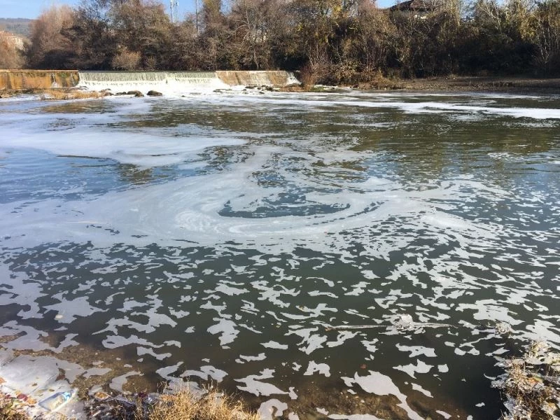 Irmak suyunun bentten dökülmesiyle birlikte oluşan köpüklerin fabrika atığı kimyasallardan kaynaklanabileceği şüphesi üzerinde durulurken ırmak yüzeyinin tamamının beyaz köpüklerle kaplandığı görüldü.