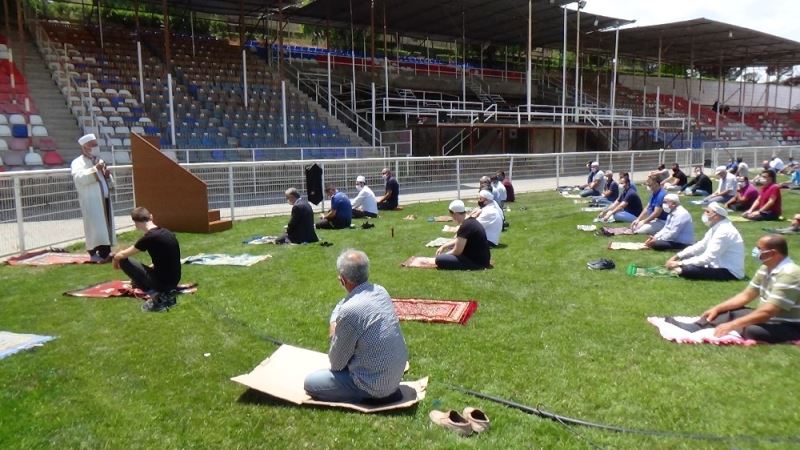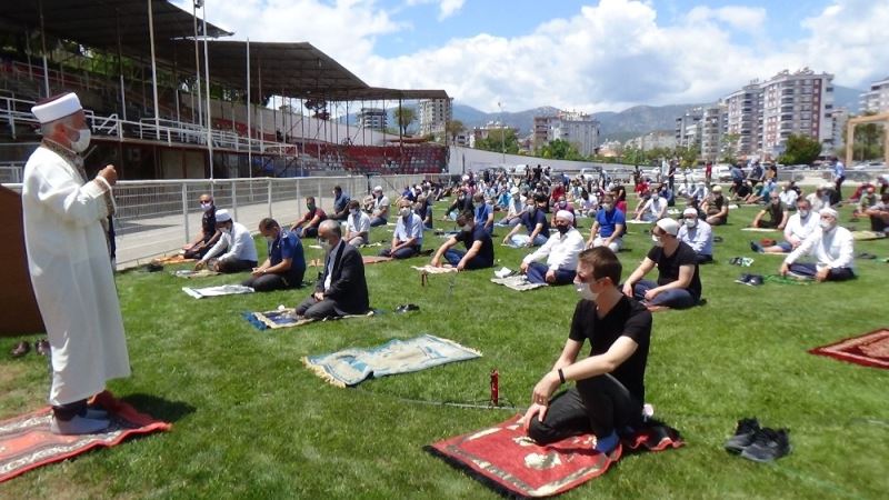 Antalya’nın Kumluca ilçesinde 2,5 ay aradan sonra ilk cuma namazı, her yıl baş pehlivanların güreş tutup kıyasıya mücadele ettiği Karatepe Stadyumunda kılındı.