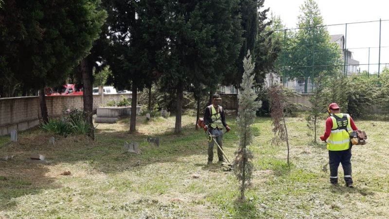Başiskele Belediyesi, Ramazan Bayramı öncesi ilçede bulunan tüm mezarlıklarda temizlik çalışması yaptı.