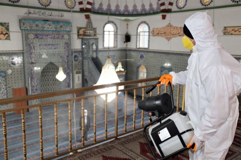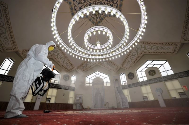 Başiskele Belediyesi, yeniden toplu namaz için camilerin hijyen çalışmalarını sürdürüyor.