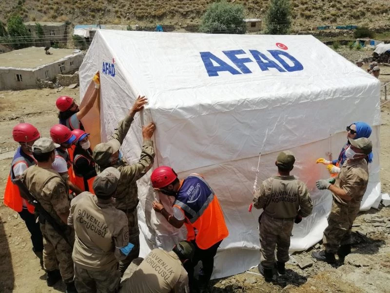 Sel felaketi yaşanan bölgelerde AFAD ekipleri çadırların kurulmasını sağlarken, Kızılay tarafından da sıcak yemek yardımı yapılıyor. AFAD İl Müdürlüğü tarafından yapılan açıklamada, “Sel afetinden etkilenen Esenyamaç ve Onikidere mezrasında yaşayan vatandaşlarımızın geçici barınmalarını sağlayacakları yaşam çadırları AFAD gönüllülerimiz ve güvenlik korucularımız tarafından kurularak teslim edilmiştir” denildi.