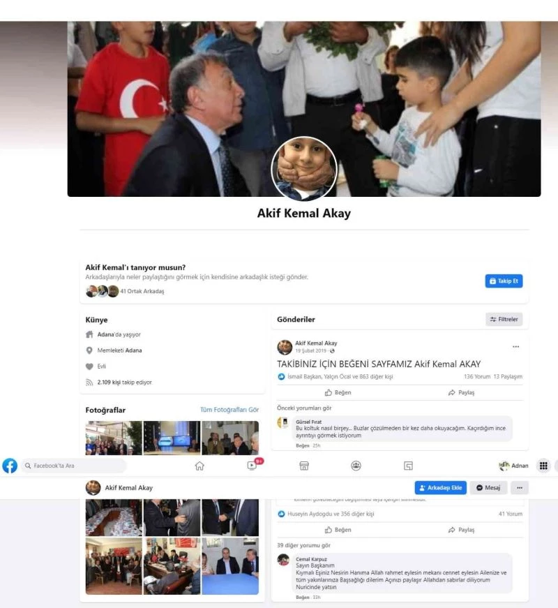 Sosyal medya platformu Facebook’ta Seyhan Belediye Başkanı Akif Kemal Akay’ın adını taşıyan “mavi rozet”li sayfanın Başkan Akif Kemal Akay ile bir ilgisi olmadığı bildirildi.