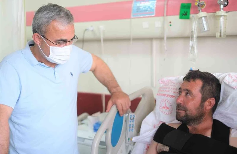 Belediye Başkanı Prof. Dr. Alim Işık, yurt dışı görevinden döner dönmez ayağının tozu ile iş kazası sonrası tedavi gördüğü hastanede Mehmet Ali Kıyak’ı ziyaret etti.