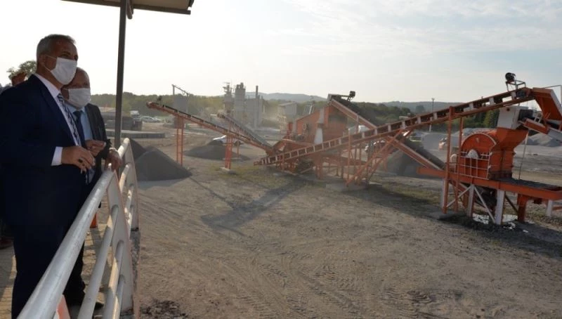 Hendek Belediye Başkanı Turgut Babaoğlu, belediye şantiye sahasında yeni kurulan taş kırma ve eleme tesisinde incelemeler yaparak bilgiler verdi.