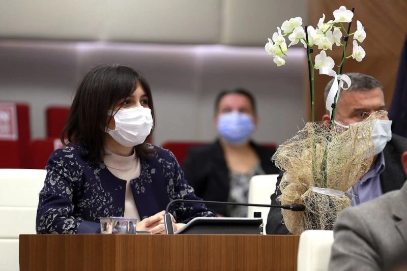 Toplantıdan önce kadın meclis üyelerine Büyükşehir Belediye Başkanı Muhittin Böcek’in Dünya Emekçi Kadınlar Günü nedeniyle gönderdiği beyaz orkideler hediye edildi.