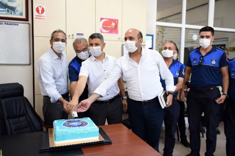 Mersin’in Tarsus ilçe Belediye Başkanı Haluk Bozdoğan, Zabıta Teşkilatı’nın kuruluşunun 194. yılı nedeniyle belediye bünyesinde görevli Zabıta Müdürlüğü personelini ziyaret ederek, birlikte pasta kesti.