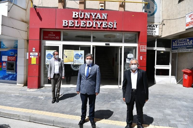 Büyükşehir Belediye Başkanı Memduh Büyükkılıç, Bünyan Belediyesi’ni ziyaretinin ardından sosyal mesafe kurallarına da uyarak esnafları da ziyaret etti ve hayırlı işler temennisinde bulundu.