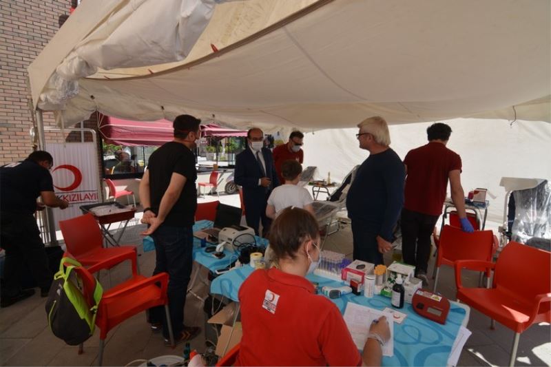Kızılay’ın kan bağışı noktasında canla başla mesai yapan sağlık çalışanlarını da tebrik eden Başkan Mustafa Çöl, gayretlerinden dolayı teşekkür ederek, zor ve meşakkatli bir iş yaptıklarını, bu bağlamda her türlü desteği hak ettiklerini belirtti.