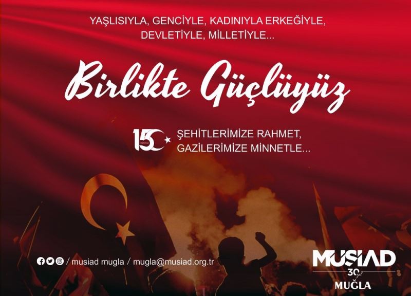 15 Temmuz hain darbe girişiminin 4’üncü yılı nedeniyle yazılı açıklama yapan Müstakil Sanayici ve İşadamları Derneği Muğla Şube Başkanı Av. Kazım Demir, derneklerinin her zaman her koşulda milli iradeye sahip çıkacağını açıkladı.