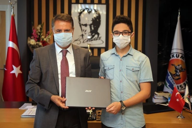 Atakum Belediye Başkanı Av. Cemil Deveci, LGS 2020’de elde ettiği 496,061 puanla Samsun birincisi olan ve İstanbul Erkek Lisesi’ni kazanan Ahmet Yiğit Girgin’e dizüstü bilgisayar hediye etti.