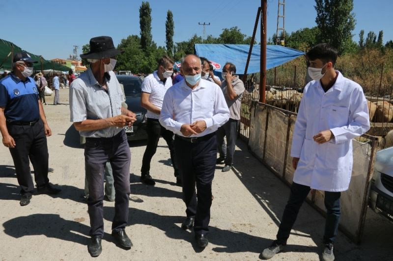 Yahyalı Belediye Başkanı Esat Öztürk, Kurban Bayramı arefesinde kurban satış pazarını ziyaret etti.