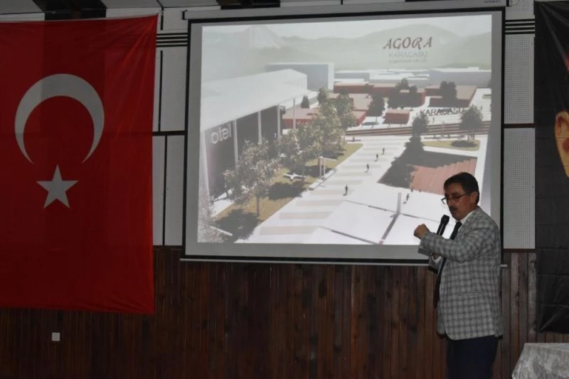 Karacasu’nun tarihine yakışır bir şekilde proje hazırladıklarını ifade eden Başkan İnal, hayalindeki AGORA projesini gazeteciler ile paylaşarak “Hayalimdeki bir proje. Bunu Karacasulu hemşerilerim daha görmedi. Geçtiğimiz Perşembe günü proje çizimleri tamamlandı, ilk kez sizinle paylaşıyorum. Afrodisias’daki amfi tiyatroyu, meydana taşıyacağız. Afrodisias’daki Agora şehir merkezinde olacak. Karacasu’nun çehresini tam anlamıyla değiştirecek ve tarihine yakışacak büyük bir proje olacak. Karacasu’nun simgesi olan dericiler, çömlekçilerin bulunduğu bir çarşı yapacağız. Bu projemizi, Aydın’a geldiği zaman Çevre ve Şehircilik Bakanımız Murat Kurum’a bahsettik. Projemize olumlu bir yanıt veren Bakanımız, kentsel dönüşüm adı altında çalışmalarımızı yapmamızı istedi. Karacasu merkezine yakışır bir meydan yapacağız. Büyük bir proje olduğunu biliyoruz fakat bu proje tamamlandığında kimse Karacasu’yu tanıyamayacak. Projemiz 4 etaptan oluşuyor, ilk etapta Agora-1 dediğimiz alanı yapacağız. Bu projeyi bitirdiğimizde 10-15 yıl sonra kimse Karacasu’yu tanıyamayacak. Bu projelerimiz ile Karacasu uçacak” dedi.