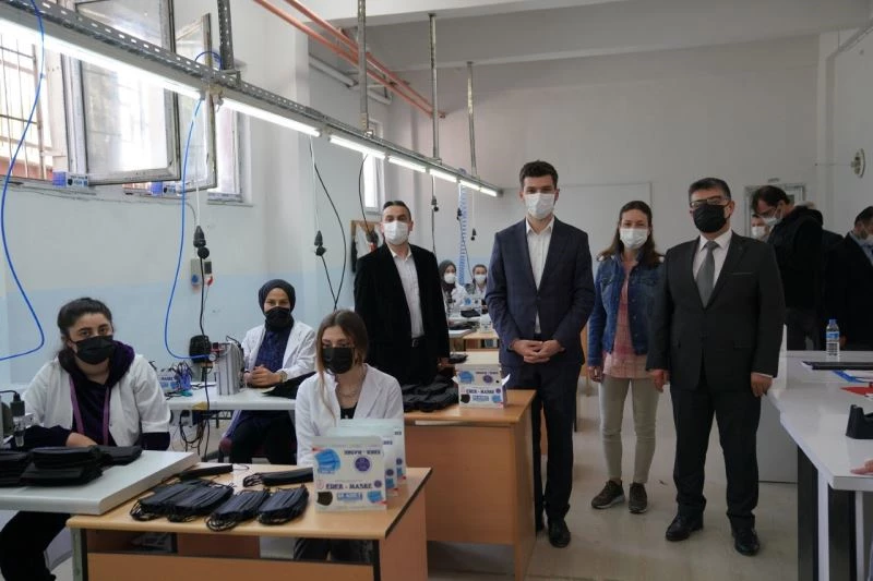 Erbaa Belediye Başkanı Ertuğrul Karagöl Erek Mesleki ve Teknik Anadolu Lisesi’nin okulda kurup günlük 10 bin maske ürettiği atölyeyi ziyaret etti. Başkan Karagöl belediyenin ihtiyacı olan maskeleri buradan karşıladıklarını, okula desteklerinin süreceğini söyledi.