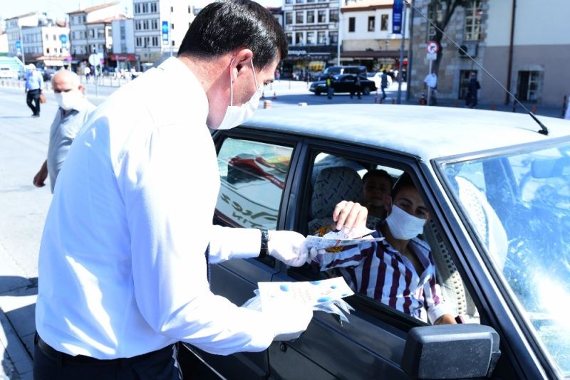 Başkan Kılca, maske ve broşür dağıttı, uyarıda bulundu