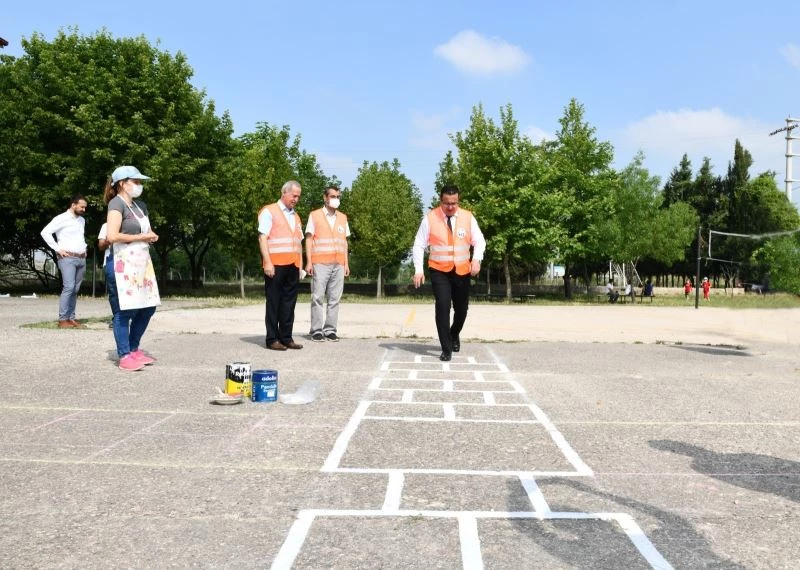 Çocuk oyun alanlarının çiziminden okul ihata duvarlarının donatılmasına kadar birçok faaliyetlerin yer aldığı programda, Başkan Kanar ve Milli Eğitim Müdürü Efe, 2 Temmuzda sona erecek eğitim programı öncesi çocuklara destek verdi.