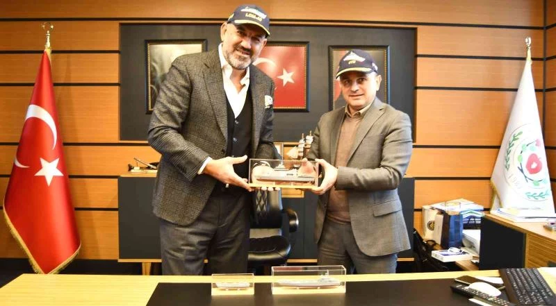 Katar Deniz Kuvvetlerine Anadolu Tersanesi tarafından inşa edilerek teslim edilen “Savaş Eğitim Gemisi” Al-Doha maketi, Süalp Ürkmez tarafından Belediye Başkanı Dr. Metin Oral’a hediye edildi.