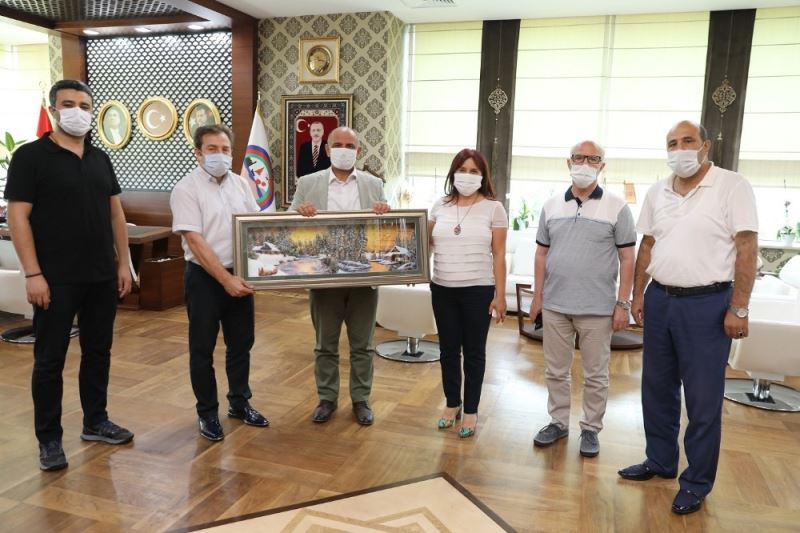 Körfez Halk Eğitim Müdürü Sergülen Kurt da Başkan Şener Söğüt’e Halk Eğitim olarak yapılan ve bundan sonra yapımı planlanan çalışmalar hakkında bilgiler aktardı. Kurt ve beraberindeki müdür yardımcıları daha sonra Başkan Şener Söğüt’e el emeği bir tablo hediye etti.