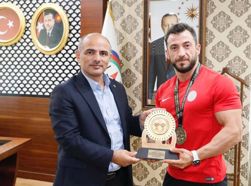 Körfez Belediyesi’nde fitness antrenörü olarak görev yapan Uğur Yılmaz, Vücut Geliştirme Federasyonu tarafından düzenlenen yarışmada Türkiye Şampiyonu oldu. Başkan Söğüt de şampiyonu makamında ağırladı, tebrik etti.