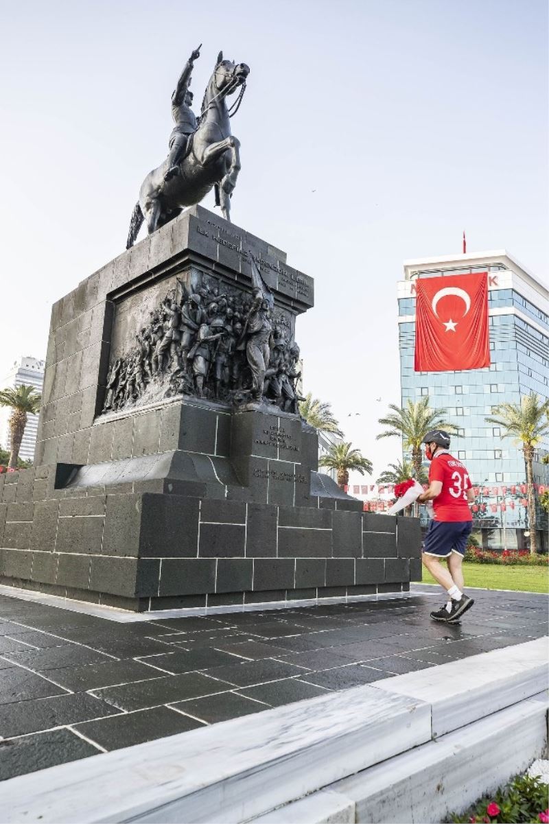 19 Mayıs 1919 yılında, Gazi Mustafa Kemal Atatürk ve arkadaşlarının Bandırma Vapuru ile Samsun’a çıkarak Milli Mücadele’yi başlatmalarının 101. yıl dönümü İzmir’de salgın önlemleri çerçevesinde kutlandı. İzmir Büyükşehir Belediye Başkanı Tunç Soyer, Ulu Önder’in gençlere armağan ettiği 19 Mayıs Atatürk’ü Anma, Gençlik ve Spor Bayramında Cumhuriyet Meydanı’ndaki anıtına sabah 07.00’de bisikletiyle geldi. Anıta vatandaşlar adına karanfil bırakan Başkan Tunç Soyer, burada bir dakikalık saygı duruşunda bulundu.