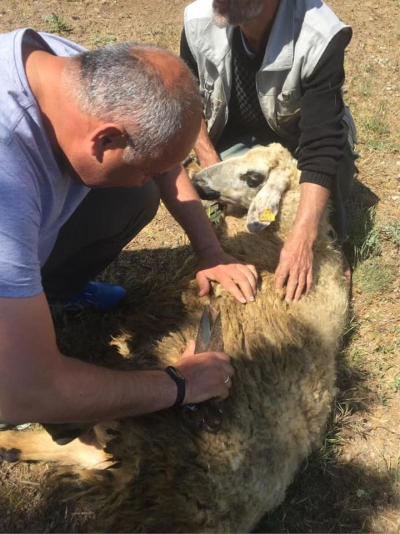 Yahşihan Belediye Başkanı Osman Türkyılmaz, küçükbaş hayvan yetiştiricilerini ziyaret ederken koyun kırpmaya yardım etmeyi de ihmal etmedi.